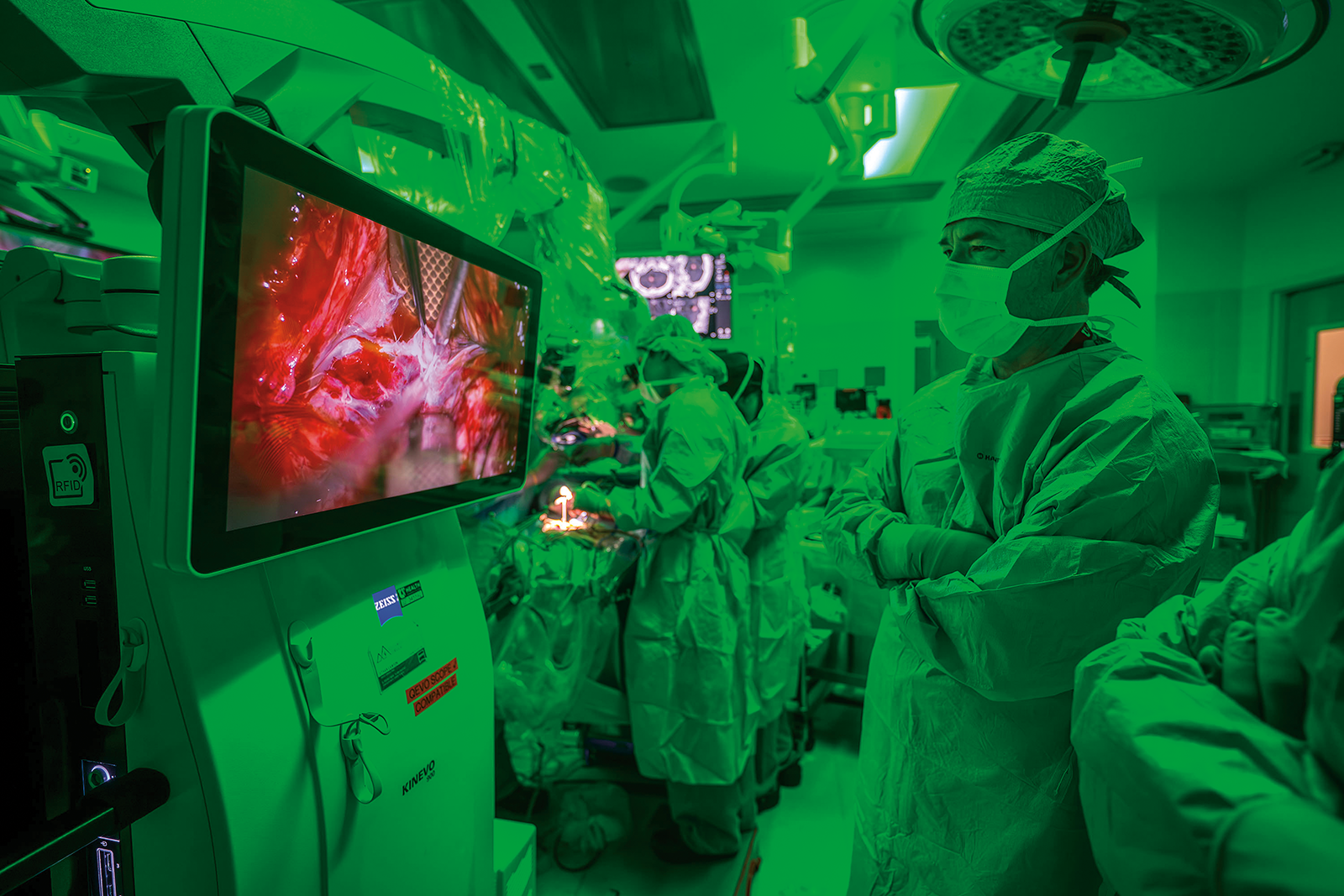 Bob Carter, MD, PhD, works with his surgical team to remove a brain tumor from a patient in Salt Lake City.
